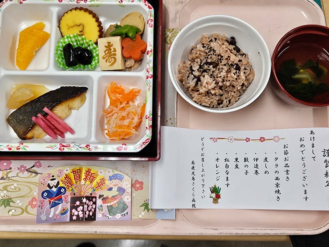 栄養科では、お食事の時間が楽しみになるよう工夫を凝らし、日々「安全で美味しい食事」の提供に努めています。