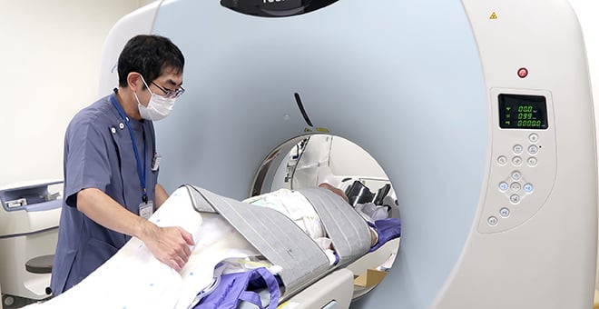放射線機器(一般撮影装置、CT装置、骨密度測定装置など)を用いて身体の内部を画像化し、病気・病変の早期発見に資する画像作成を行なっています。